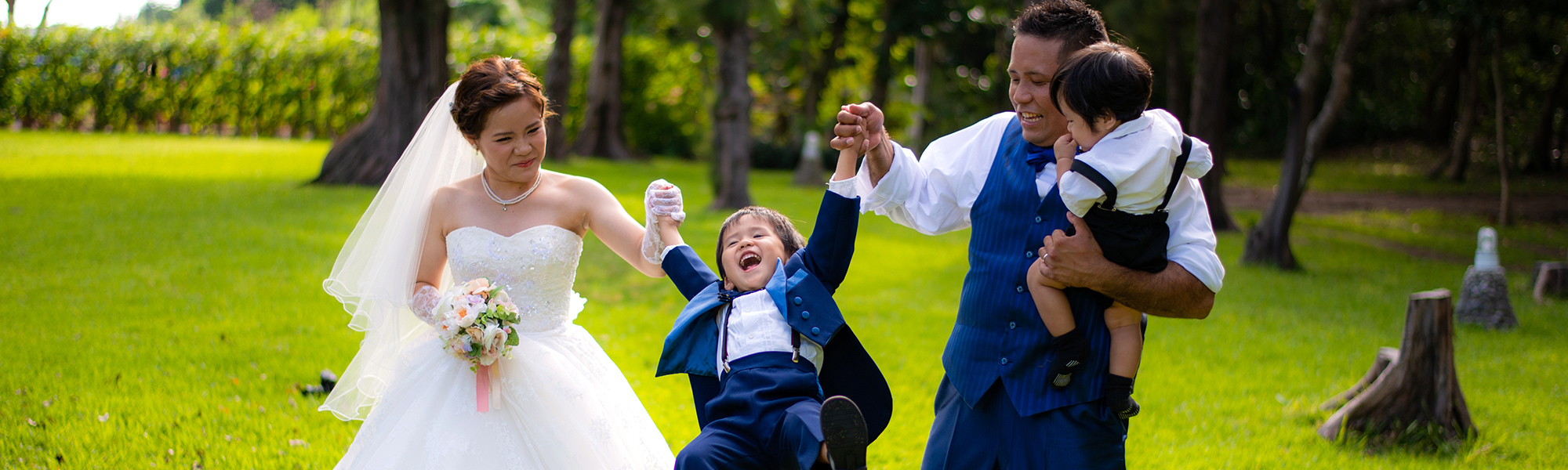 お子様も一緒にドレスやタキシードを着てカッコよく!可愛く 撮影出来ちゃいます! お二人の撮影中はベビーシッターさんがお子様を見てくれているのでパパとママも安心♪